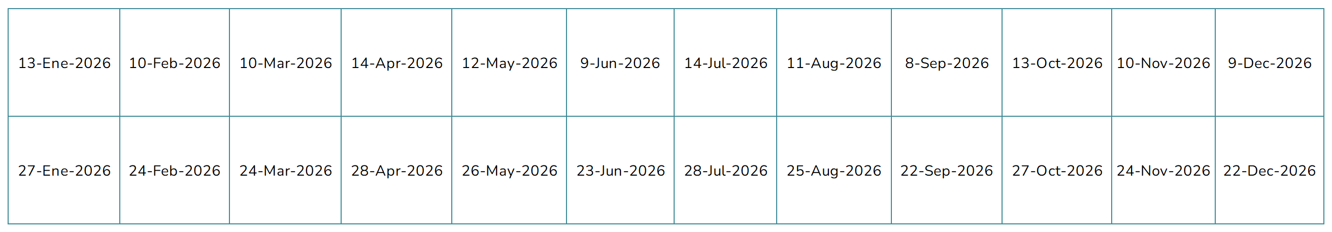 *** Calendario de Pagos 2026