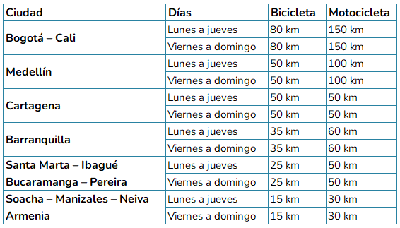 🏍️ Cumplir con el recorrido mínimo semanal (km según tu ciudad y vehículo).